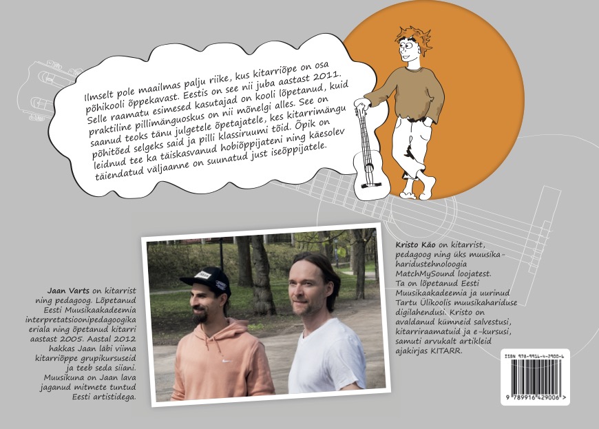 Õpikust saad kätte kõik tähtsamad baasoskused: õpid lugema tabulatuuri, mängima ühehäälseid riffe ja meloodiaid ning vahetama akorde. Lisaks leiad põnevat infot kitarride ja tehnika kohta, aga ka meenutusi kitarri mängivate eesti muusikute õpingutest.